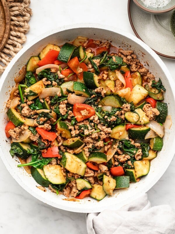 Turn off the heat. Sprinkle fresh parsley or basil on top if you have it. Serve your sausage and zucchini skillet warm, either by itself or with a side like rice, pasta, or crusty bread.