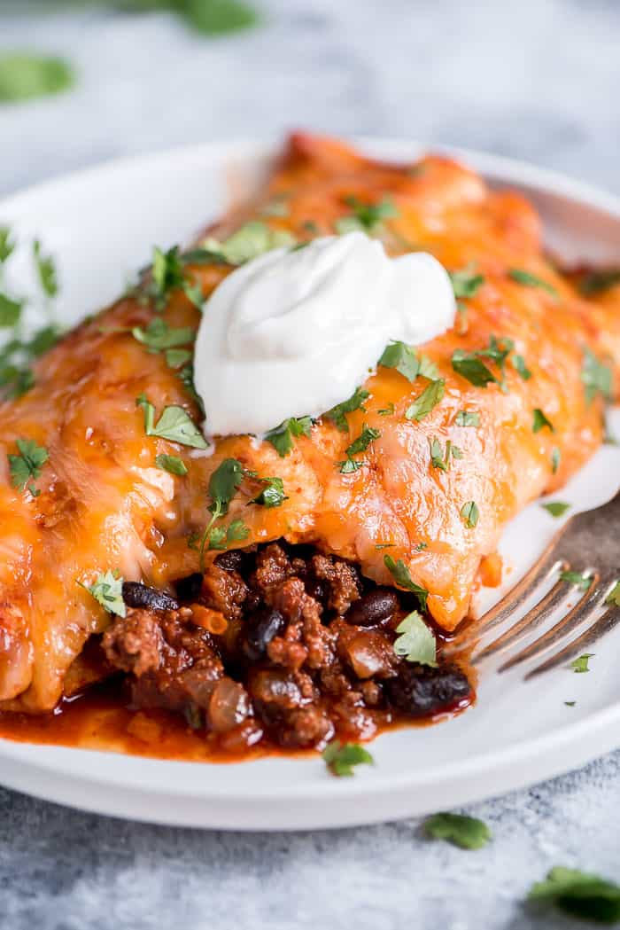 - Spoon some of the beef mixture onto the center of the tortilla.