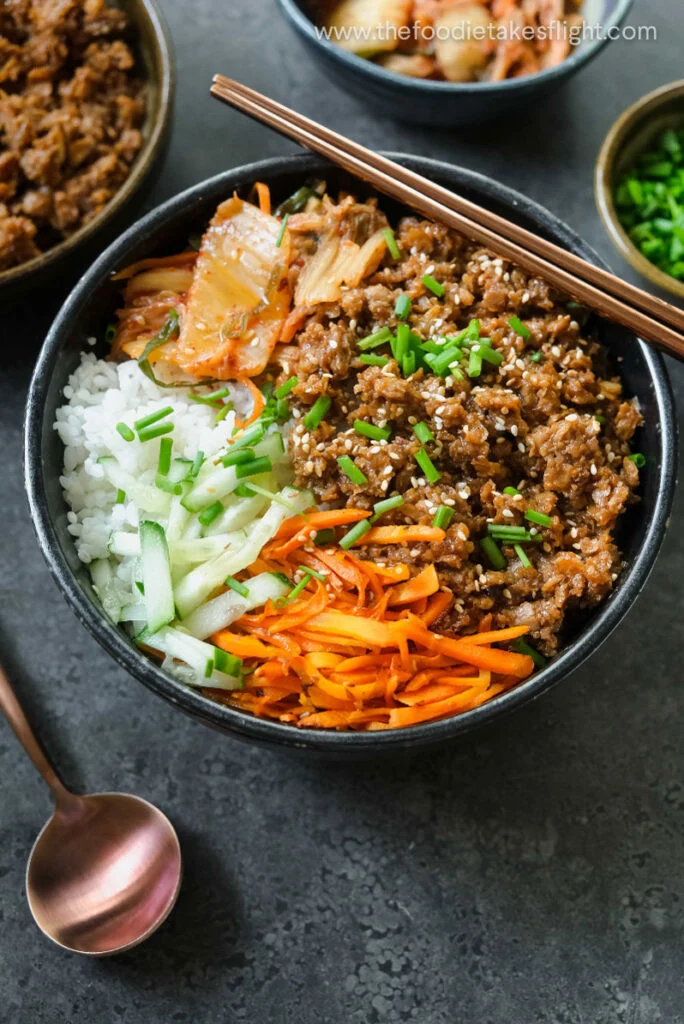 Spoon the hot rice into bowls. Add a generous amount of the Korean beef on top. You can also add some steamed veggies on the side and sprinkle sesame seeds if you like.