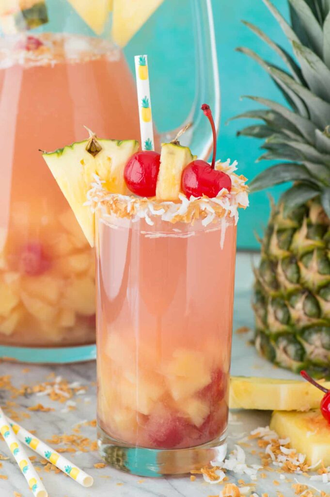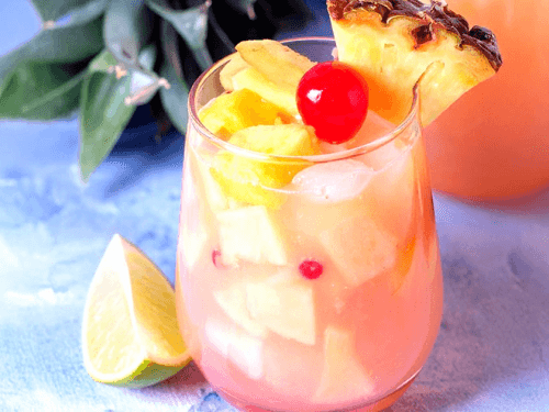 Yes! You can make a non-alcoholic version by swapping out the wine and coconut rum. Use sparkling white grape juice or apple juice instead of wine and add extra pineapple juice or coconut water instead of rum. It’s great for kids or guests who don’t drink alcohol.