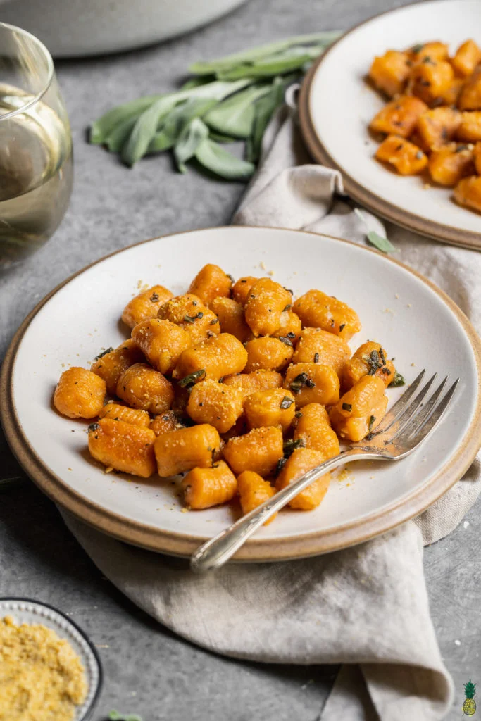 Pumpkin gnocchi pairs beautifully with sage butter, creamy Alfredo sauce, tomato sauce, or even browned butter with walnuts.