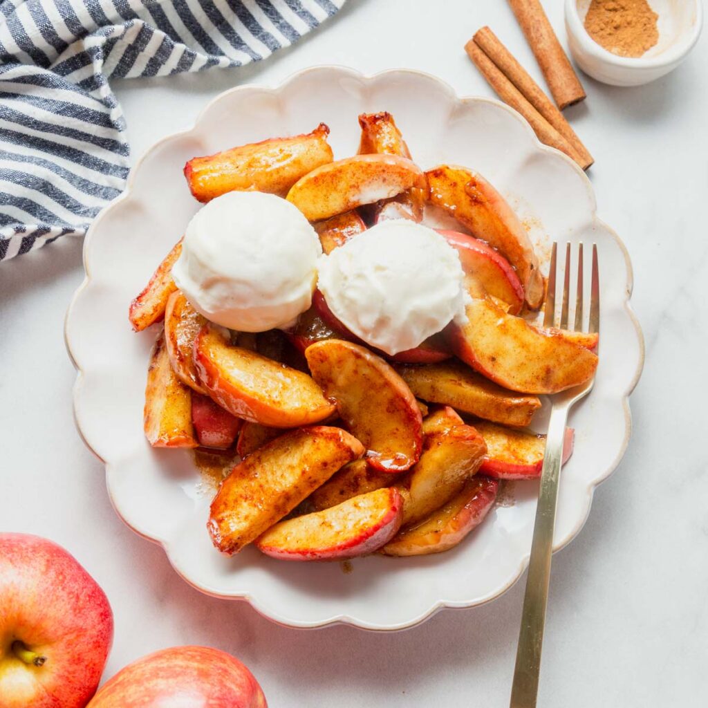 The apples are ready when they are soft and golden brown. If you like them a little crispier, cook for an extra 2 minutes.