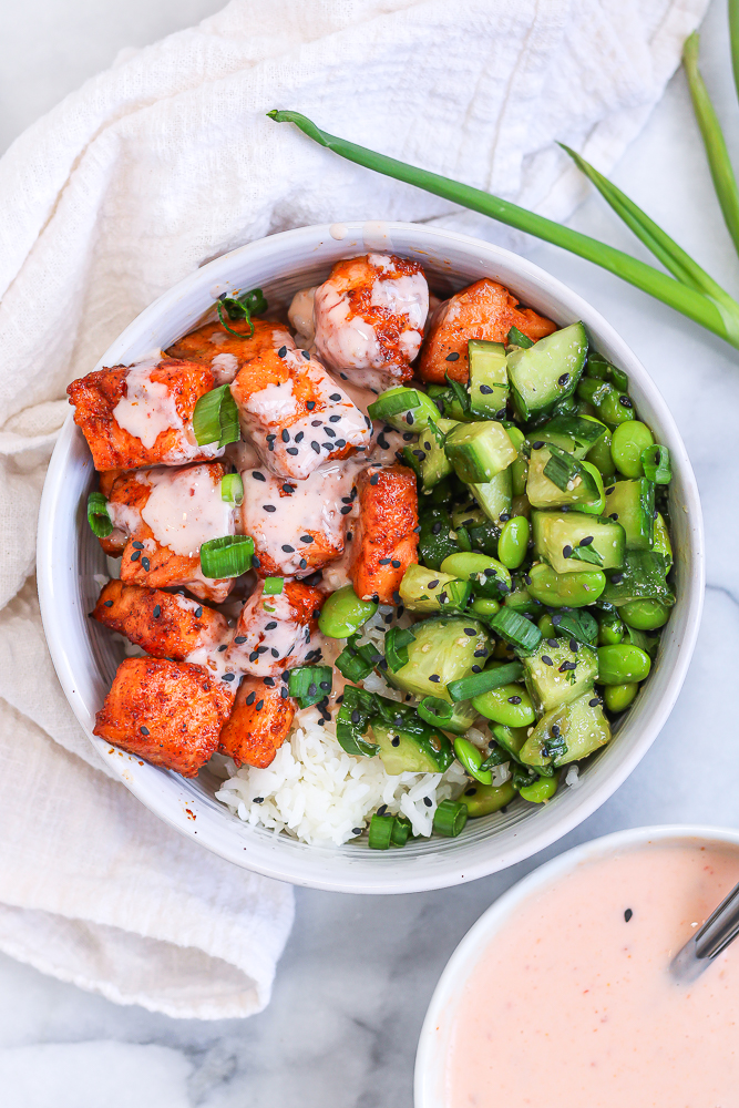 Here’s everything you need to make Bang Bang Salmon Bites Bowls.