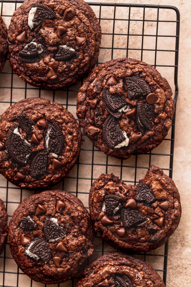 Once baked, take the cookies out of the oven and let them cool on the baking sheet for about 5 minutes. Then, transfer them to a wire rack to cool completely. Now your Oreo Brownie Cookies are ready to enjoy! Serve them with a glass of milk or your favorite drink.